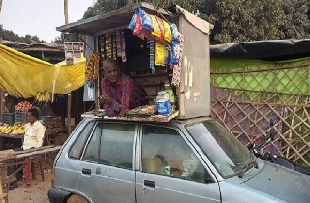कार की छत पर पान की दुकान-