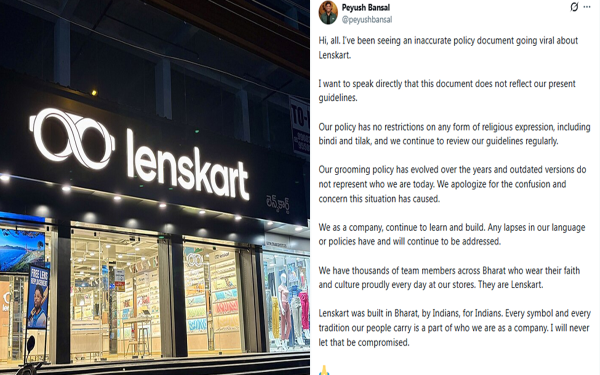 इसके बाद पीयूष बंसल ने सोशल मीडिया पर सफाई देते हुए इन आरोपों को खारिज किया और कहा लिखा, “नमस्ते सभी को, मैं लेंसकार्ट से जुड़ा एक गलत पॉलिसी दस्तावेज़ वायरल होते देख रहा हूं। यह हमारी वर्तमान नीति को नहीं दर्शाता। हमारे कर्मचारियों को बिंदी या तिलक पहनने की पूरी स्वतंत्रता है। हमारी ग्रूमिंग पॉलिसी समय के साथ विकसित हुई है और पुराने संस्करण आज हमारी पहचान को नहीं दर्शाते। इस भ्रम के लिए हम क्षमा चाहते हैं।”