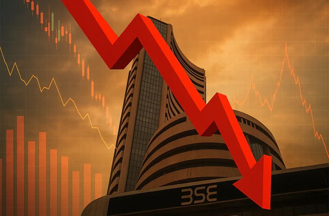 सुबह के कारोबार में बीएसई सेंसेक्स 500 अंक से अधिक गिरकर 84,500 के स्तर से नीचे आ गया, जबकि एनएसई निफ्टी 140 अंक टूटकर 25,900 के नीचे फिसल गया। दोपहर 12:06 बजे सेंसेक्स 458.34 अंक (0.54%) गिरकर 84,538.79 पर और निफ्टी 130.20 अंक (0.50%) गिरकर 25,923.30 पर ट्रेड कर रहा था।
