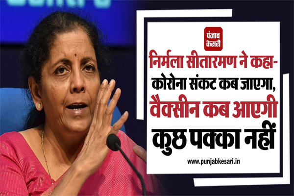 निर्मला सीतारमण ने कहा- कोरोना संकट कब जाएगा, वैक्सीन कब आएगी कुछ पक्का नहीं
