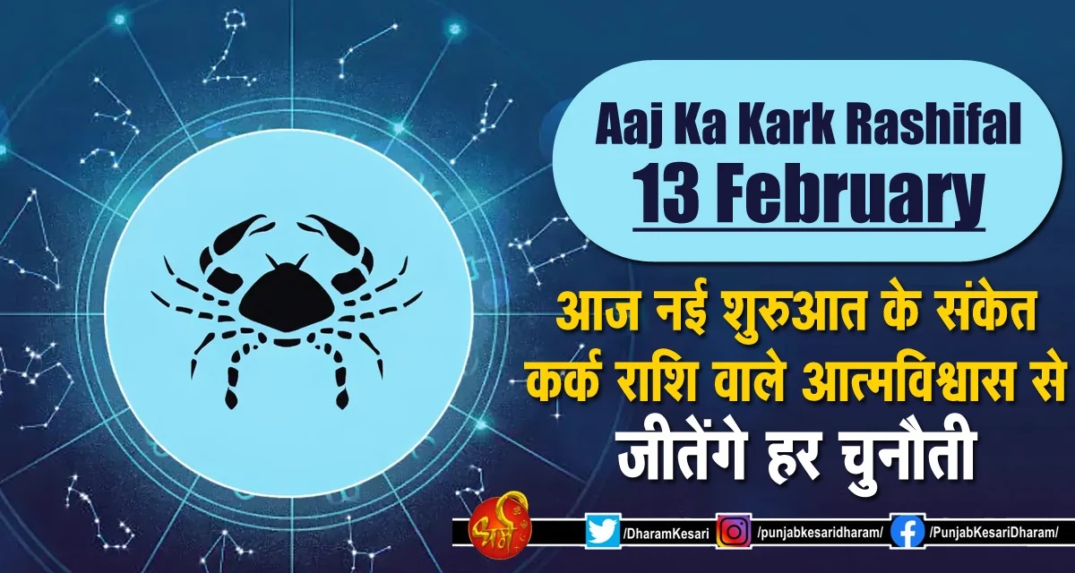 Aaj Ka Kark Rashifal 13 February : कर्क राशि के जातकों के लिए 13 फरवरी 2026 का दिन एक नई चेतना और नई ऊर्जा लेकर आ रहा है। चंद्रमा की प्रधानता वाली इस राशि के लिए आज सितारों का संदेश साफ है आत्मविश्वास ही आपकी सबसे बड़ी जीत है। आज आप न केवल चुनौतियों का सामना करेंगे बल्कि उन्हें अवसर में बदलकर विजय भी प्राप्त करेंगे। कर्क राशि के लोग स्वभाव से संवेदनशील और थोड़े शर्मीले होते हैं लेकिन आज का गोचर आपको एक योद्धा की भूमिका में देख रहा है। आज आप अपनी भावनाओं पर नियंत्रण पाकर तार्किक रूप से निर्णय लेंगे। यदि कोई पुराना डर आपको आगे बढ़ने से रोक रहा था, तो आज वह डर समाप्त होगा और आप एक नई शुरुआत के लिए तैयार होंगे।