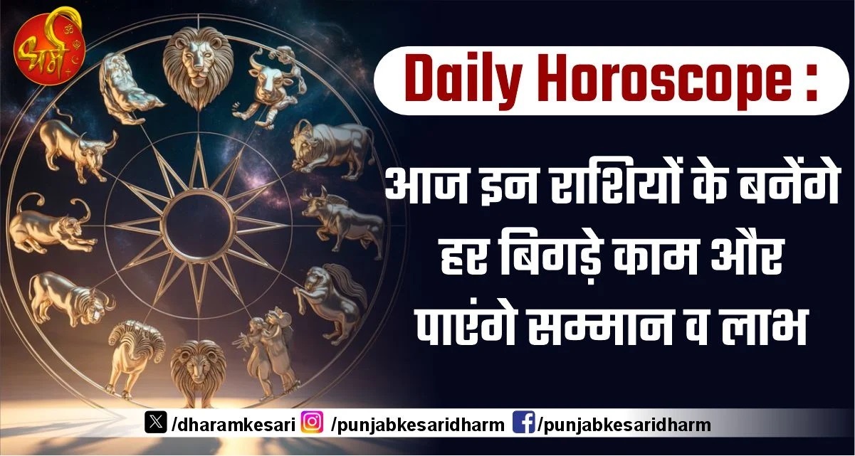 Daily horoscope : आज इन राशियों के बनेंगे हर बिगड़े काम और पाएंगे सम्मान व लाभ