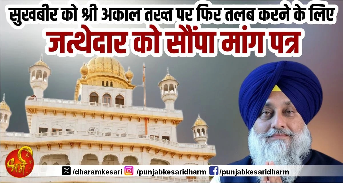 सुखबीर को श्री अकाल तख्त पर फिर तलब करने के लिए जत्थेदार को सौंपा मांग पत्र