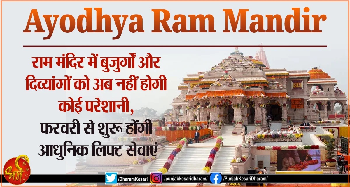 Ayodhya Ram Mandir : राम मंदिर में बुजुर्गों और दिव्यांगों को अब नहीं होगी कोई परेशानी, फरवरी से शुरू होंगी आधुनिक लिफ्ट सेवाएं