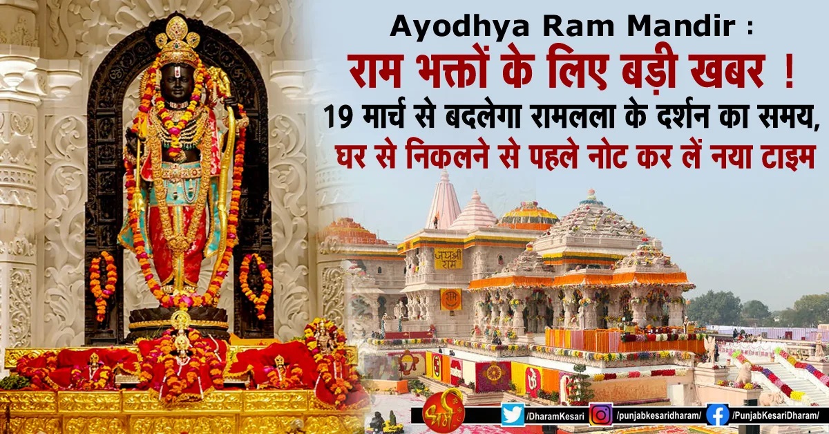 Ayodhya Ram Mandir : राम भक्तों के लिए बड़ी खबर !19 मार्च से बदलेगा रामलला के दर्शन का समय, घर से निकलने से पहले नोट कर लें नया टाइम