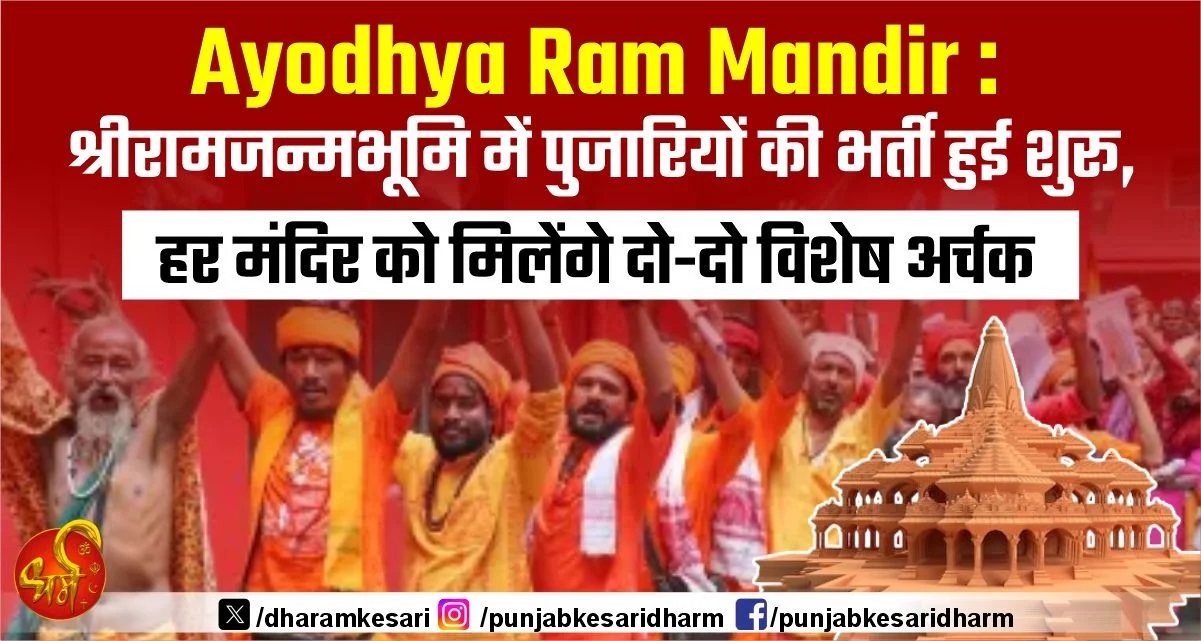 Ayodhya Ram Mandir : श्रीरामजन्मभूमि में पुजारियों की भर्ती हुई शुरू, हर मंदिर को मिलेंगे दो-दो विशेष अर्चक