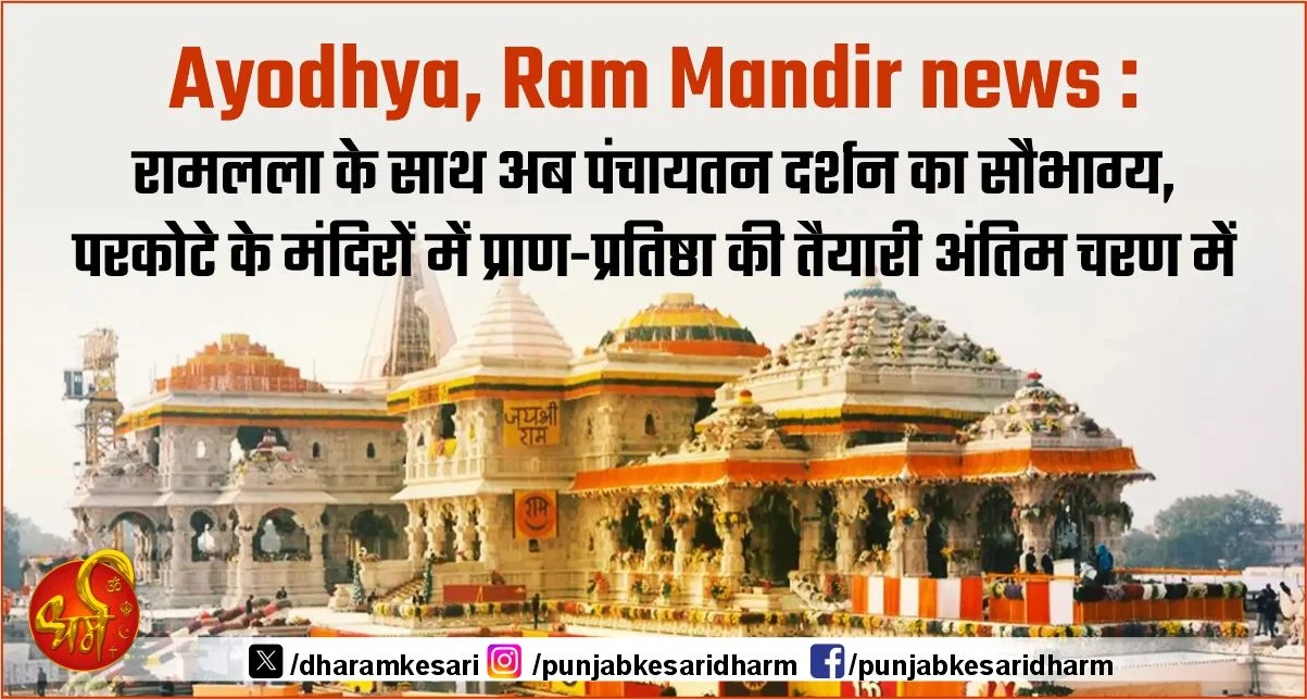Ayodhya Ram Mandir news : रामलला के साथ अब पंचायतन दर्शन का सौभाग्य, परकोटे के मंदिरों में प्राण-प्रतिष्ठा की तैयारी अंतिम चरण में
