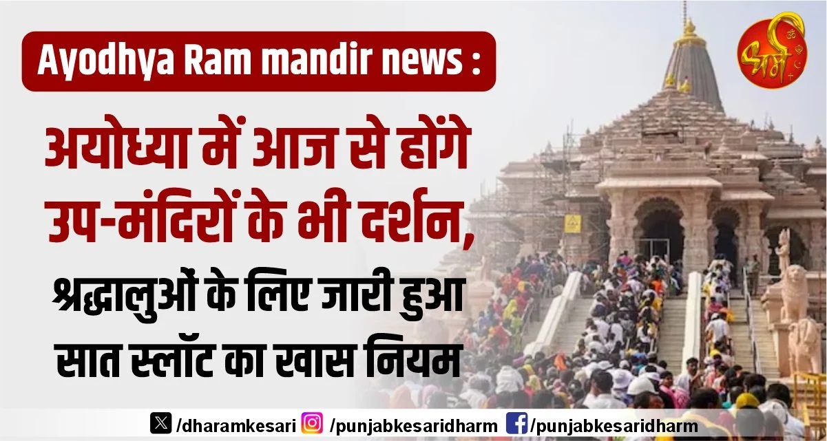 Ayodhya Ram mandir news : अयोध्या में आज से होंगे उप-मंदिरों के भी दर्शन, श्रद्धालुओं के लिए जारी हुआ सात स्लॉट का खास नियम