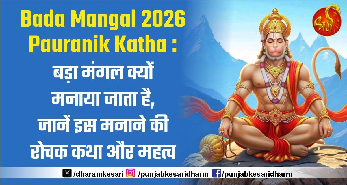 Bada Mangal 2026 Pauranik Katha : हिंदू धर्म में बड़ा मंगल का बहुत खास महत्व है। जैसे कि सभी को पता है कि मंगलवार का दिन हनुमान जी को समर्पित होता है। लेकिन ज्येष्ठ माह का हर मंगलवार बड़ा मंगल के रूप में मनाया जाता है। इस बार ज्येष्ठ माह में कुल 8 बड़े मंगल पड़ेंगे। ज्येष्ठ महीने में ही श्रीराम और बजरंगबली का मिलन पहली बार हुआ था। इसलिए इस माह में आने वाले सभी मंगलवार को बड़ा मंगल या बुढ़वा मंगल कहा जाता है। माना जाता है कि इस दौरान हनुमान जी की पूरे विधि-विधान क साथ पूजा करने से और उपवास रखने से जीवन में आने वाली हर परेशानियों से छुटकारा मिलता है। तो आइए जानते हैं क्यों बड़ा मंगल मनाया जाता है और इसके महत्व के बारे में-