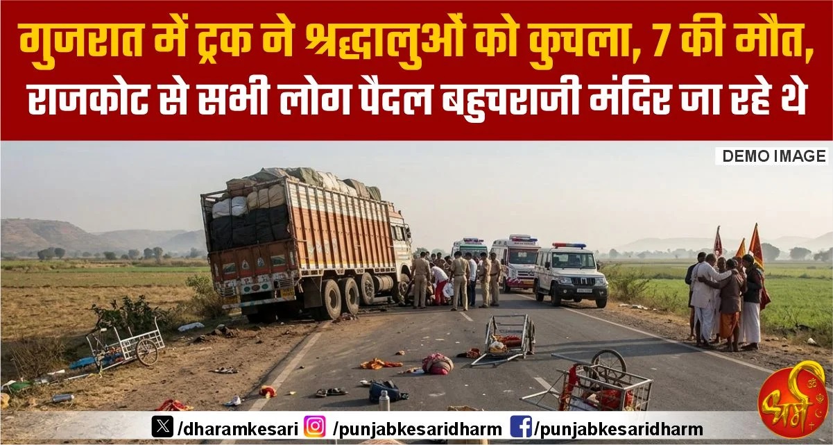गुजरात में ट्रक ने श्रद्धालुओं को कुचला, 7 की मौत, राजकोट से सभी लोग पैदल बहुचराजी मंदिर जा रहे थे
