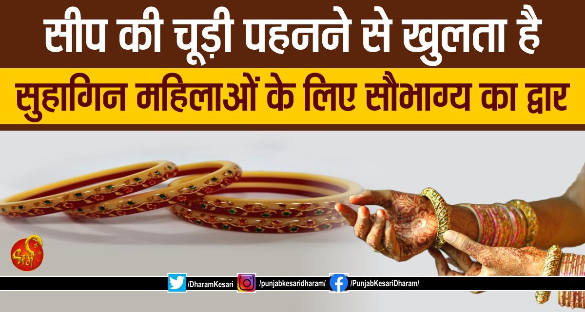 शास्त्रों के अनुसार सीप की चूड़ी का सीधा संबंध धन की देवी मां लक्ष्मी के होता है। जो भी महिला इसे पहनती है उसके पति को कभी भी आर्थिक तंगी का सामना नहीं करना पड़ता है। इसके अलावा ऐसा करने से चंद्र दोष से भी मुक्ति मिलती है और घर-परिवार में कभी भी पैसों से जुड़ी परेशानियों का सामना नहीं करना पड़ता है।