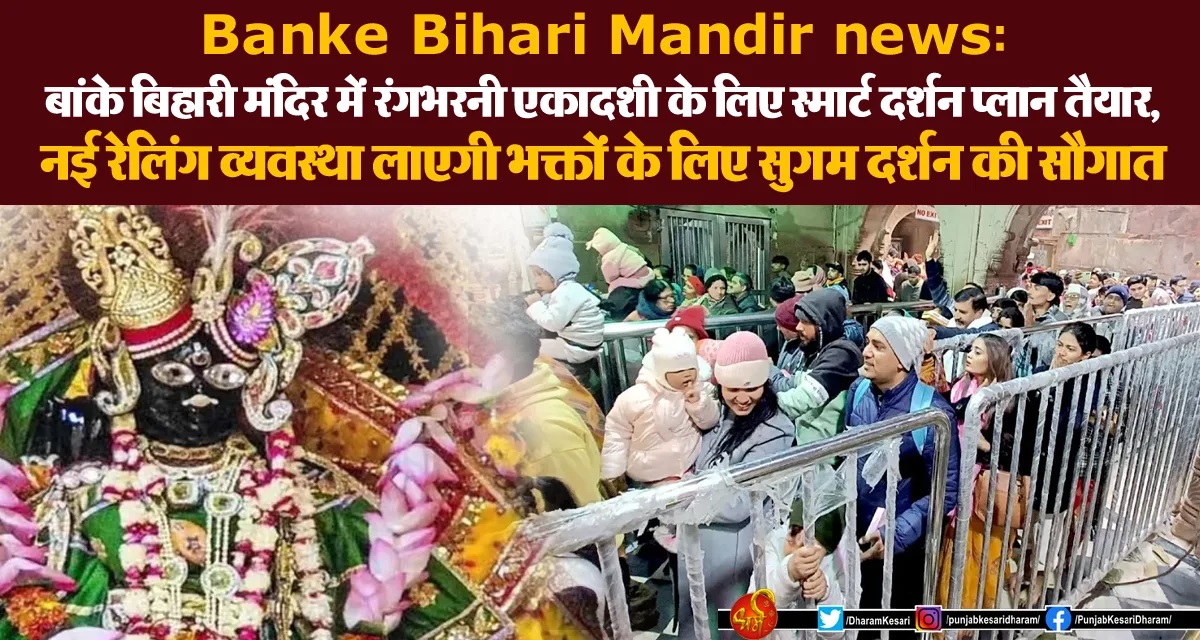 Banke Bihari Mandir news : बांके बिहारी मंदिर में रंगभरनी एकादशी के लिए स्मार्ट दर्शन प्लान तैयार, नई रेलिंग व्यवस्था लाएगी भक्तों के लिए सुगम दर्शन की सौगात