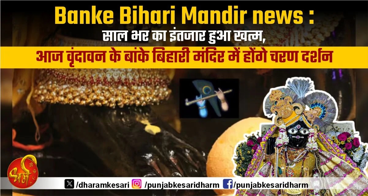 Banke Bihari Mandir news : साल भर का इंतजार हुआ खत्म, आज वृंदावन के बांके बिहारी मंदिर में होंगे चरण दर्शन