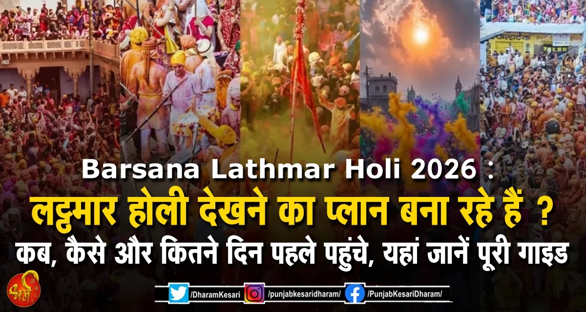 Barsana Lathmar Holi 2026 : देश के कई हिस्सों में होली एक–दो दिन में खत्म हो जाती है, लेकिन ब्रज में यह उत्सव करीब 40 दिनों तक धूमधाम से मनाया जाता है। भगवान श्रीकृष्ण और राधा रानी की लीलाओं से जुड़ी ब्रज की होली दुनिया भर में प्रसिद्ध है। इनमें बरसाना की लठमार होली खास आकर्षण का केंद्र होती है। हर साल बड़ी संख्या में श्रद्धालु और पर्यटक वृंदावन, मथुरा और बरसाना पहुंचकर इस अनोखे उत्सव का आनंद लेते हैं। अगर आप भी 2026 में इस खास होली को देखने की योजना बना रहे हैं, तो यात्रा और समय की सही जानकारी पहले से जान लेना जरूरी है।