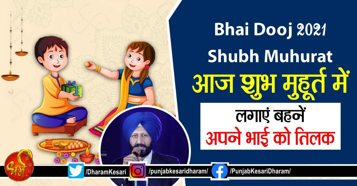 Bhai Dooj 2021 Shubh Muhurat: भाई दूज के शुभ मुहूर्त के बारे में यह बताना चाहूंगा कि 6 नवंबर, शनिवार को भाई को तिलक करने का शुभ मुहूर्त दोपहर 1:10 से 3:21 तक है। यानि शुभ मुहूर्त की कुल अवधि 2 घंटे 11 मिनट तक है।