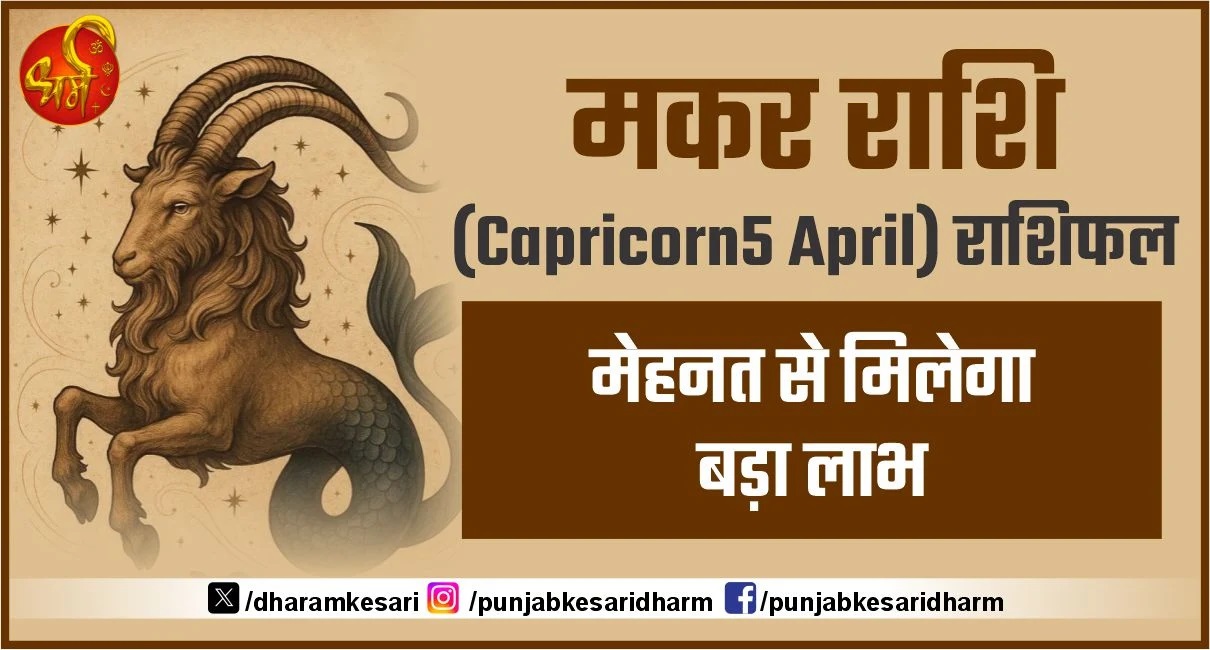Makar Rashifal 5 April 2026 आज का मकर राशिफल 5 अप्रैल 2026: 5 अप्रैल का दिन मकर राशि वालों के लिए कर्म, अनुशासन और ठोस परिणामों का दिन साबित हो सकता है। शनि ग्रह की इस राशि के जातक स्वभाव से ही मेहनती, धैर्यवान और लक्ष्य के प्रति समर्पित होते हैं। आज आपकी यही विशेषताएं आपको सफलता के करीब ले जाएंगी।