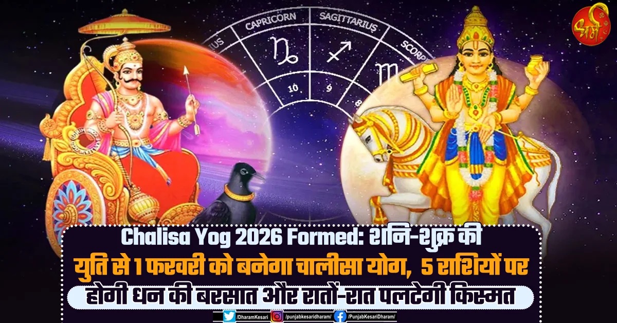 Chalisa Yog 2026: फरवरी 2026 की शुरुआत ज्योतिषीय दृष्टि से बेहद खास रहने वाली है। 1 फरवरी 2026 को शनि और शुक्र ग्रह के बीच 40 डिग्री की दूरी बनने से चालीसा योग का निर्माण होगा। ज्योतिष शास्त्र के अनुसार, यह योग मेहनत, अनुशासन और धैर्य का प्रतीक माना जाता है और जीवन में स्थायी सफलता और खुशियां प्रदान करता है।