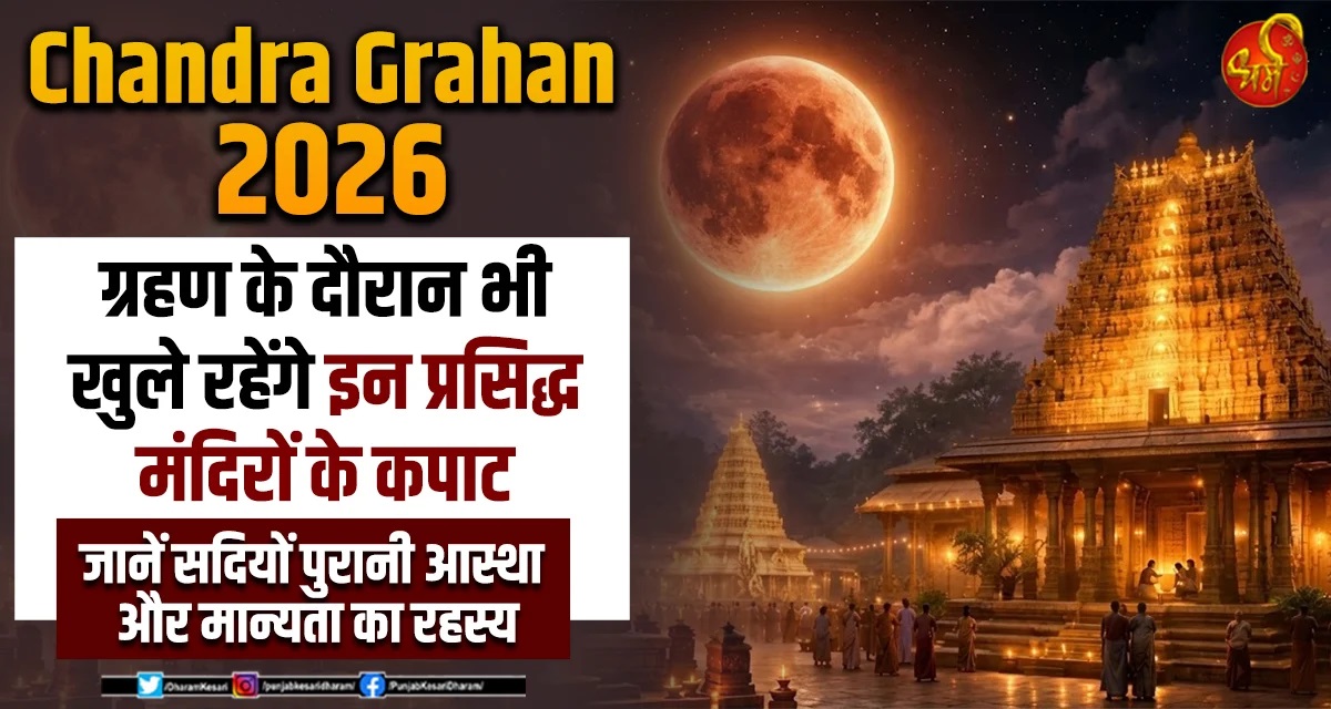 Chandra Grahan 2026: 3 मार्च 2026 को साल का पहला पूर्ण चंद्र ग्रहण लगने जा रहा है। सामान्यतः ग्रहण लगते ही देशभर के अधिकांश मंदिरों में पूजा-पाठ रोक दिया जाता है और मंदिरों के कपाट बंद कर दिए जाते हैं। धार्मिक मान्यता है कि ग्रहण के दौरान वातावरण अशुद्ध हो जाता है, इसलिए भगवान की मूर्तियों को ढक दिया जाता है और नियमित अनुष्ठान स्थगित कर दिए जाते हैं। हालांकि, भारत में कुछ ऐसे प्रसिद्ध मंदिर भी हैं जहां ग्रहण के दौरान भी पूजा-अर्चना, आरती और दर्शन की परंपरा निरंतर जारी रहती है। इन मंदिरों की विशेष धार्मिक मान्यताएं और ऐतिहासिक परंपराएं उन्हें अन्य मंदिरों से अलग बनाती हैं। आइए जानते हैं ऐसे प्रमुख मंदिरों के बारे में।