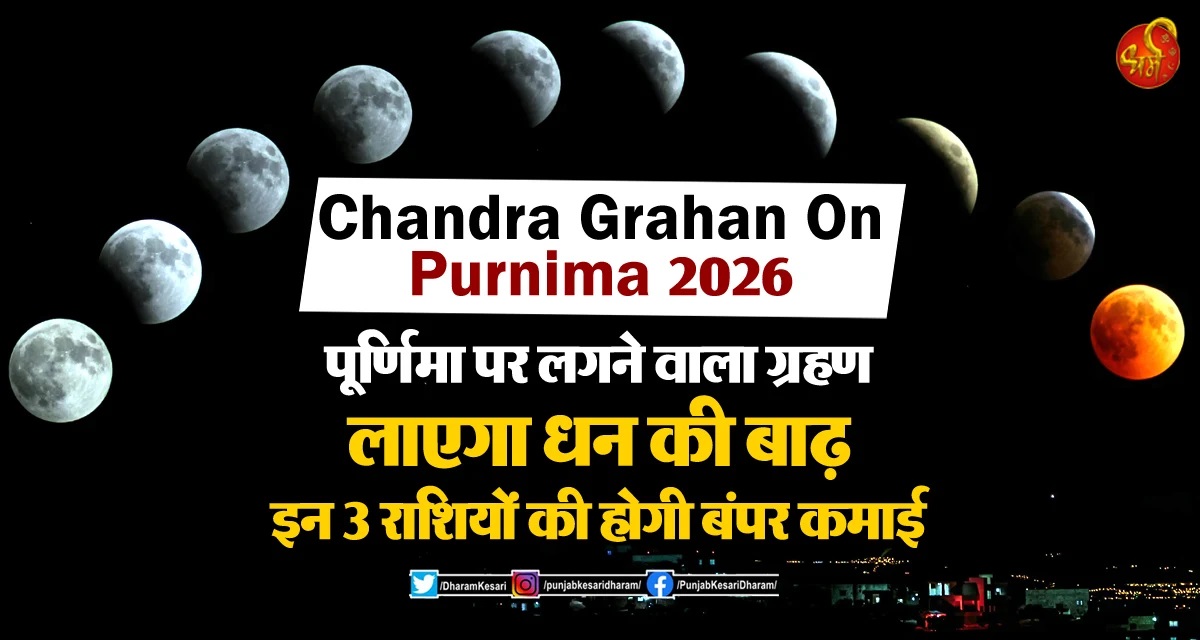 Chandra Grahan On Purnima 2026 : साल 2026 खगोलीय और ज्योतिषीय दृष्टि से बेहद महत्वपूर्ण रहने वाला है। इस साल का पहला चंद्र ग्रहण 3 मार्च 2026 को फाल्गुन पूर्णिमा यानी होलिका दहन के दिन लगने जा रहा है। यह चंद्र ग्रहण एक पूर्ण ग्रहण होगा। भारत में इसके दिखाई देने के कारण इसका धार्मिक प्रभाव और सूतक काल मान्य होगा। ज्योतिष शास्त्र में ग्रहण का प्रभाव सभी राशियों पर पड़ता है, लेकिन इस बार का चंद्र ग्रहण कुछ खास राशियों के लिए कुबेर का खजाना खोलने वाला साबित हो सकता है। तो आइए जानते हैं कि इस चंद्र ग्रहण कौन सी राशियों पर होगी धन की वर्षा।