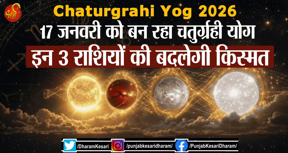 Chaturgrahi Yog 2026 : ज्योतिष शास्त्र में ग्रहों का राशि परिवर्तन और युति अत्यंत महत्वपूर्ण माना जाता है। जब एक ही राशि में चार ग्रहों का मिलन होता है, तो उसे चतुर्ग्रही योग कहा जाता है। 17 जनवरी को ब्रह्मांड में एक ऐसी ही दुर्लभ स्थिति बन रही है, जो ज्योतिषीय दृष्टि से बेहद प्रभावशाली है। यह योग न केवल व्यक्तिगत जीवन पर, बल्कि देश-दुनिया और करियर की दिशा पर भी गहरा प्रभाव डालता है। आइए विस्तार से जानते हैं कि यह चतुर्ग्रही योग क्या है और किन 3 भाग्यशाली राशियों के लिए सफलता और मान-सम्मान के द्वार खोलने वाला है।