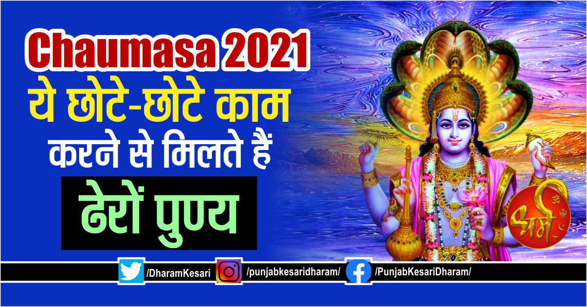 Chaumasa 2021: जिन दिनों में भगवान विष्णु शयन करते हैं, उन चार महीनों को चातुर्मास एवं चौमासा भी कहते हैं। देवशयनी एकादशी से हरिप्रबोधनी एकादशी तक चातुर्मास चलेगा, एकादशी से एकादशी तक का चातुर्मास 20 जुलाई से शुरु होकर कार्तिक शुक्ल एकादशी तक चलेगा। जो 15 नवंबर को है। इन चार महीनों में विभिन्न धार्मिक कर्म करने पर मनुष्य को विशेष पुण्य लाभ की प्राप्ति होती है क्योंकि इन दिनों में किसी भी जीव की ओर से किया गया कोई भी पुण्यकर्म खाली नहीं जाता। वैसे तो चातुर्मास का व्रत देवशयनी एकादशी से शुरु होता है परंतु द्वादशी, पूर्णिमा, अष्टमीं और कर्क की सक्रांति से भी यह व्रत शुरु किया जा सकता है। एकादशी के दिन भगवान का पीले वस्त्रों से श्रृंगार करें तथा सफेद रंग की शैय्या पर सफेद रंग के ही वस्त्र द्वारा ढककर उन्हें शयन कराएं।