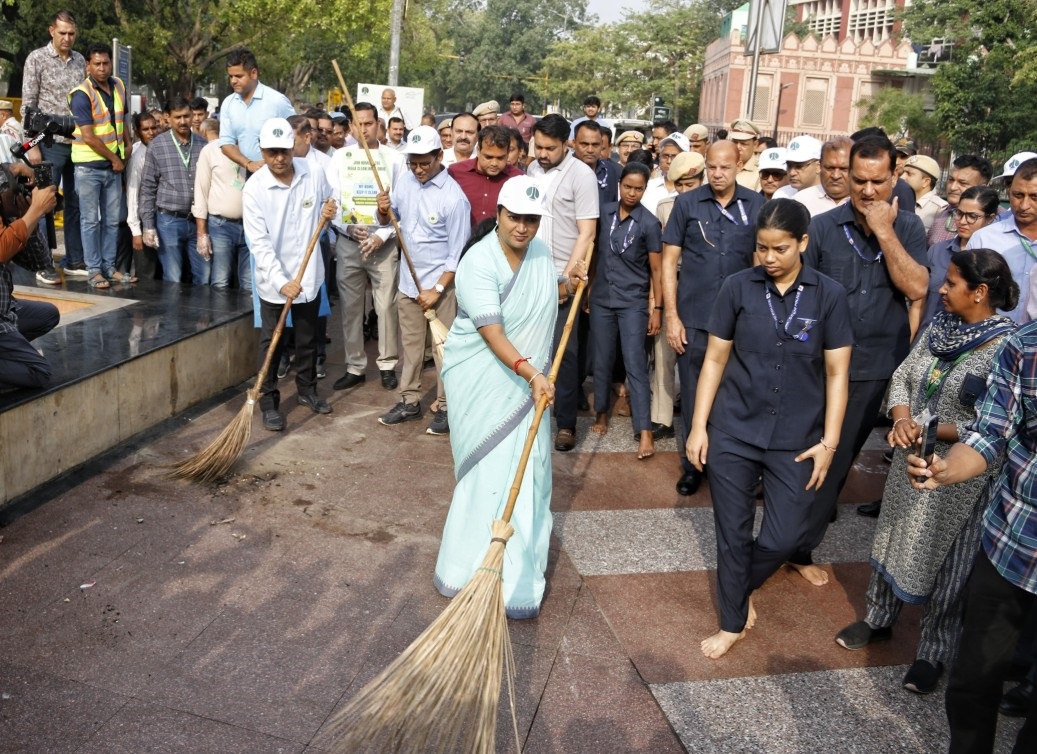 सीएम रेखा गुप्ता ने सुबह अर्घ्य दिया फिर किया स्वच्छता श्रमदान