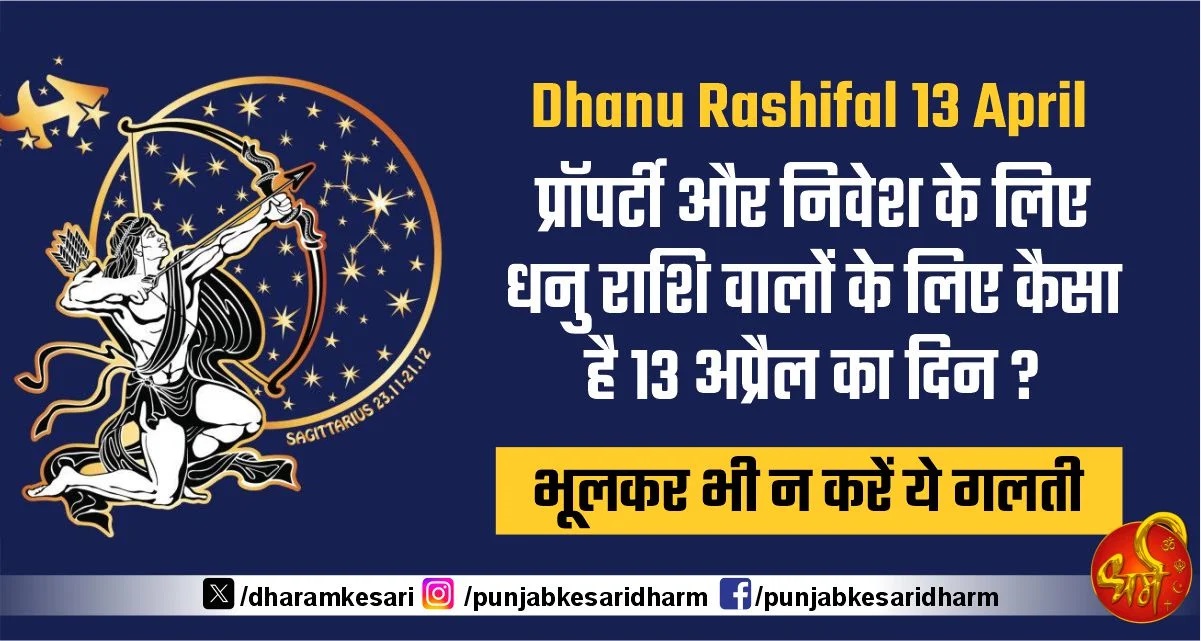 Dhanu Rashifal 13 April : प्रॉपर्टी और निवेश के लिए धनु राशि वालों के लिए कैसा है 13 अप्रैल का दिन ? भूलकर भी न करें ये गलती