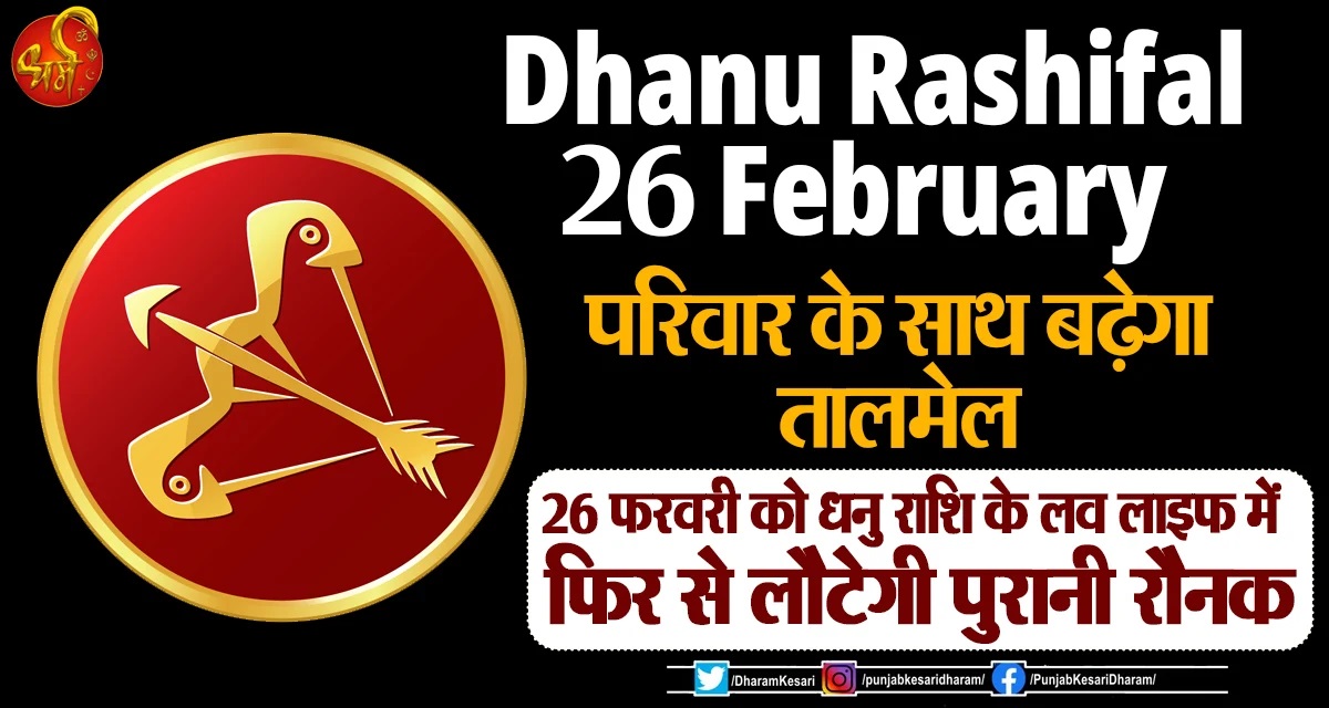 Dhanu Rashifal 26 February : परिवार के साथ बढ़ेगा तालमेल, 26 फरवरी को धनु राशि के लव लाइफ में फिर से लौटेगी पुरानी रौनक