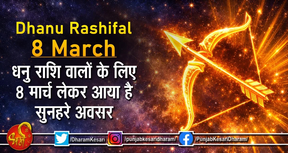 Dhanu Rashifal 8 March : धनु राशि के जातक अपनी साहसी प्रवृत्ति, दार्शनिक सोच और असीम आशावाद के लिए जाने जाते हैं। 8 मार्च 2026 का सूर्योदय आपके जीवन में एक नई चमक लेकर आ रहा है। ग्रहों की चाल यह संकेत दे रही है कि आज का दिन आपके लिए सुनहरे अवसरों का पिटारा खोलने वाला है। बृहस्पति की कृपा दृष्टि आपकी राशि पर होने के कारण, आज आप जो भी कदम उठाएंगे, उसमें सफलता की संभावना प्रबल रहेगी। आइए, विस्तार से जानते हैं कि आज का दिन आपके जीवन के विभिन्न पहलुओं को कैसे प्रभावित करेगा।
