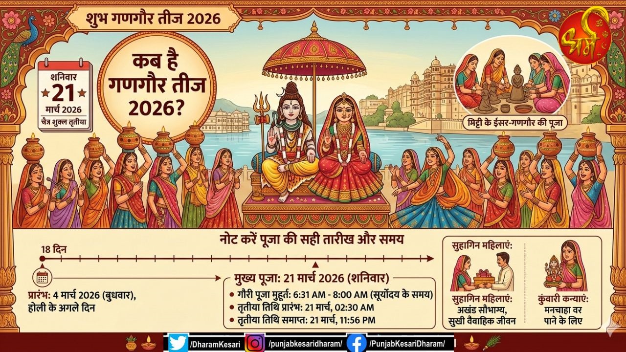 Gangaur 2026 Date: गणगौर का त्योहार राजस्थान और उत्तर भारत के कई हिस्सों में बड़े धूमधाम से मनाया जाता है। यह पर्व चैत्र मास की प्रतिपदा से शुरू होकर 18 दिनों तक चलता है, जिसका समापन चैत्र शुक्ल तृतीया को मुख्य पूजा और विसर्जन के साथ होता है।