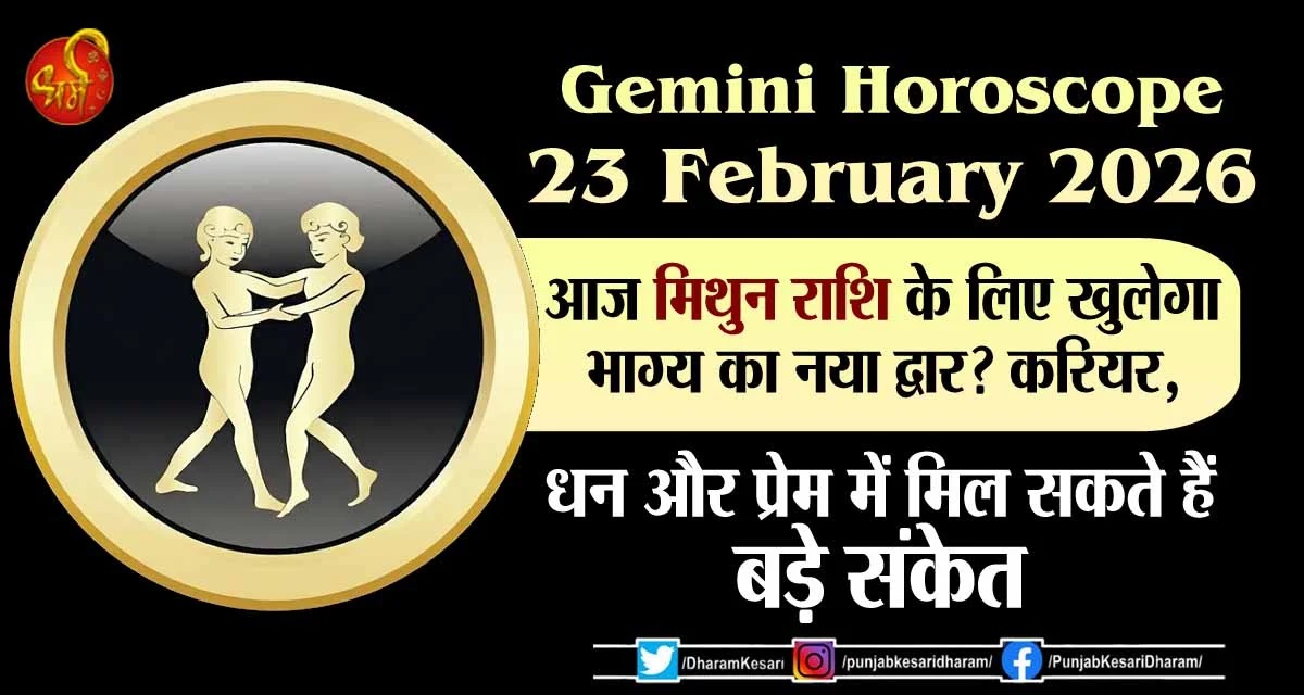 Gemini Horoscope 23 February 2026 : आज मिथुन राशि के लिए खुलेगा भाग्य का नया द्वार ? करियर, धन और प्रेम में मिल सकते हैं बड़े संकेत