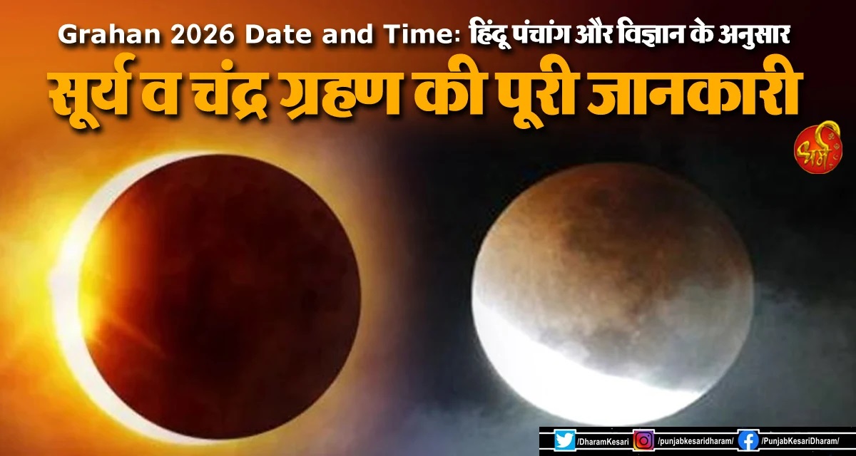 Grahan 2026 Date and Time: हिंदू धर्म, शास्त्र और खगोल विज्ञान तीनों में ग्रहण का विशेष महत्व बताया गया है। सूर्य ग्रहण और चंद्र ग्रहण को न केवल खगोलीय घटना माना जाता है, बल्कि इसका आध्यात्मिक और वैज्ञानिक प्रभाव भी स्वीकार किया गया है। वर्ष 2026 में कुल चार ग्रहण लगेंगे, जिनमें दो सूर्य ग्रहण और दो चंद्र ग्रहण शामिल हैं। आइए, हिंदू पंचांग, शास्त्र और आधुनिक विज्ञान के अनुसार 2026 के सभी ग्रहणों की सरल और प्रमाणिक जानकारी जानते हैं।