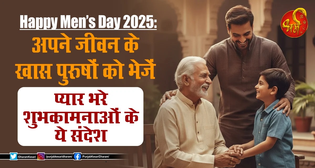 Happy Men’s Day 2025: अंतर्राष्ट्रीय पुरुष दिवस हर साल 19 नवंबर को मनाया जाता है। यह दिन समाज में पुरुषों और लड़कों के सकारात्मक मूल्यों, उनके योगदानों को पहचानने और उनके स्वास्थ्य तथा कल्याण के बारे में जागरूकता बढ़ाने के लिए समर्पित है। यहां कुछ खास संदेश दिए गए हैं, जिन्हें आप अपने जीवन के महत्वपूर्ण पुरुषों पिता, भाई, पति, दोस्त या गुरु को भेजकर उन्हें विशेष महसूस करा सकते हैं: