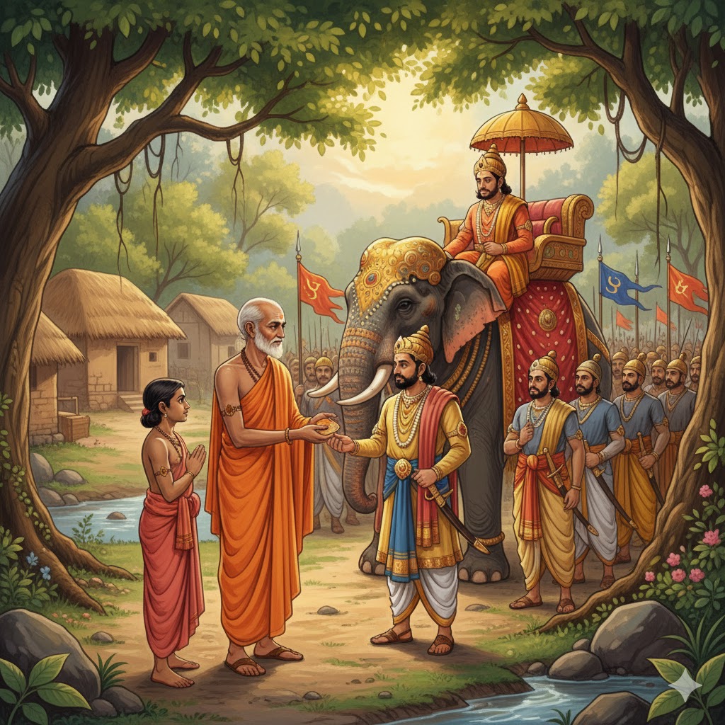 मंत्री ने राजा को बताया कि ये महात्मा जा रहे हैं। बड़े ज्ञानी हैं। राजा ने हाथी से उतर कर महात्मा जी को प्रणाम किया और कहा, ‘‘कृपया मुझे विजयी होने का आशीर्वाद दें।’’