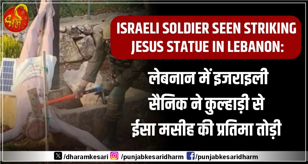 Israeli soldier seen striking Jesus statue in Lebanon: लेबनान में इजराइली सैनिक ने कुल्हाड़ी से ईसा मसीह की प्रतिमा तोड़ी