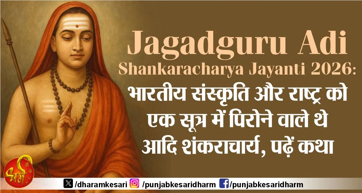 Jagadguru Adi Shankaracharya Jayanti 2026: भारत में वैदिक सनातन धर्म के पुनर्जागरण के इतिहास में भगवत्पाद जगदगुरु आद्यशंकराचार्य जी का नाम सर्वोपरि है। वैदिक सनातन धर्म की पुनर्स्थापना करने वाले महान दार्शनिक आद्य शंकराचार्य जी का जन्म भारत के केरल प्रांत में वैशाख शुक्ल पंचमी के दिन हुआ था।
