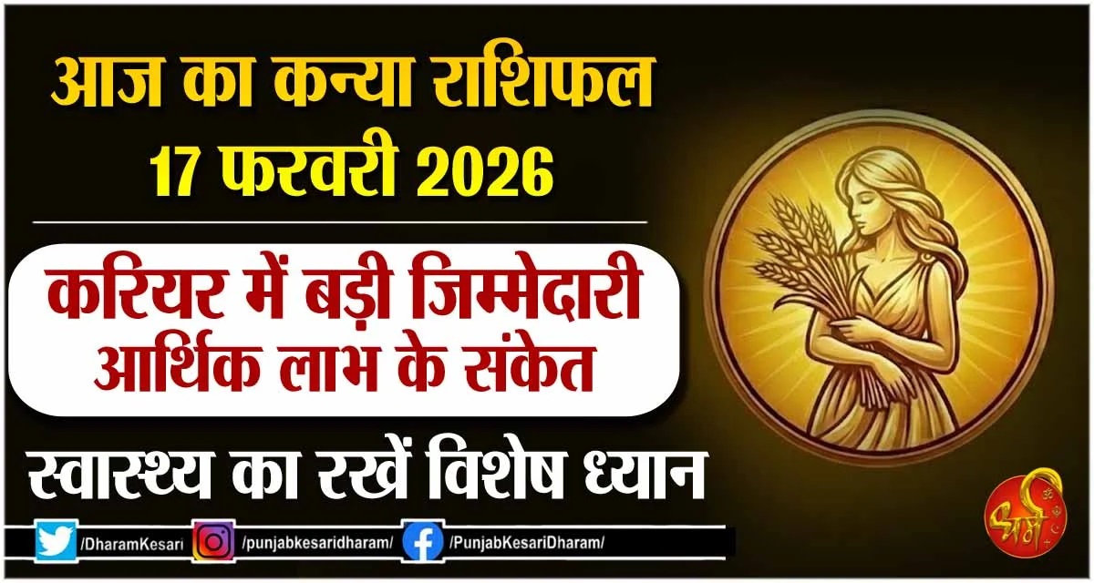 आज का कन्या राशिफल 17 फरवरी 2026: करियर में बड़ी जिम्मेदारी, आर्थिक लाभ के संकेत, स्वास्थ्य का रखें विशेष ध्यान