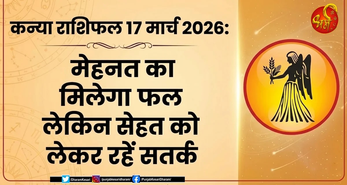 Kanya Rashifal 17 march 2026 आज का कन्या राशिफल 17 मार्च 2026: 17 मार्च 2026 का दिन कन्या राशि के जातकों के लिए मेहनत का परिणाम देने वाला साबित हो सकता है। आज आप अपने कार्यों में अच्छी प्रगति देख सकते हैं और लंबे समय से किए जा रहे प्रयासों का सकारात्मक परिणाम मिल सकता है। हालांकि दिन अच्छा रहने के बावजूद आपको स्वास्थ्य के मामलों में थोड़ी सावधानी बरतने की जरूरत होगी।