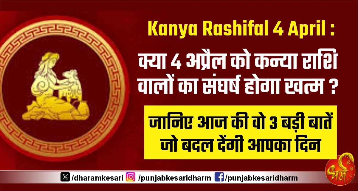 Kanya Rashifal 4 April : क्या 4 अप्रैल को कन्या राशि वालों का संघर्ष होगा खत्म ? जानिए आज की वो 3 बड़ी बातें जो बदल देंगी आपका दिन