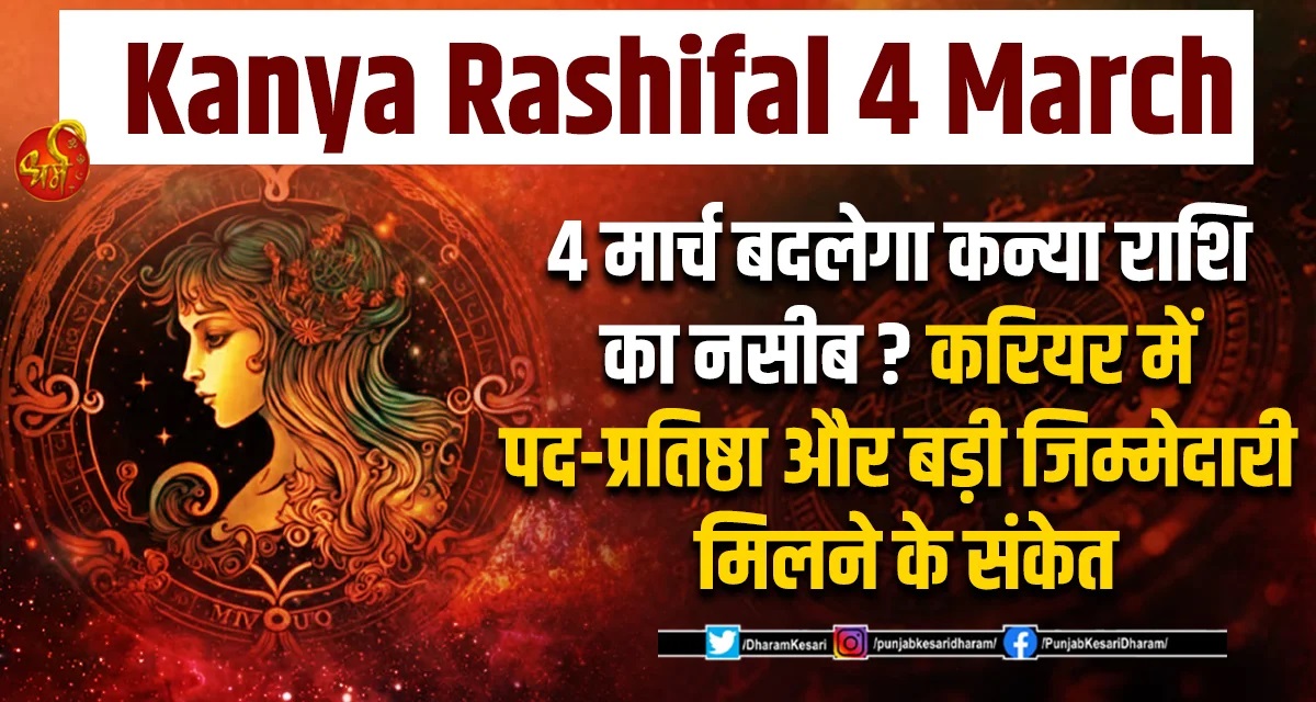Kanya Rashifal 4 March : 4 मार्च बदलेगा कन्या राशि का नसीब ? करियर में पद-प्रतिष्ठा और बड़ी जिम्मेदारी मिलने के संकेत