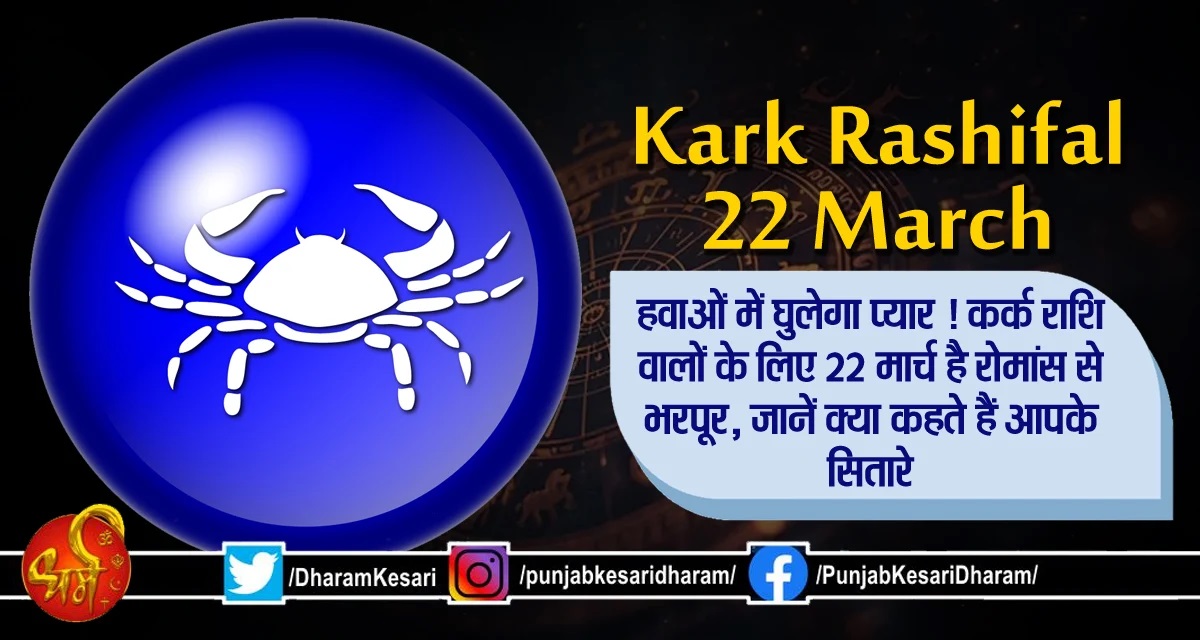 Kark Rashifal 22 March : हवाओं में घुलेगा प्यार ! कर्क राशि वालों के लिए 22 मार्च है रोमांस से भरपूर, जानें क्या कहते हैं आपके सितारे