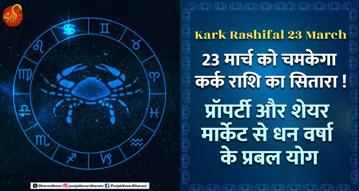 Kark Rashifal 23 March : 23 मार्च को चमकेगा कर्क राशि का सितारा ! प्रॉपर्टी और शेयर मार्केट से धन वर्षा के प्रबल योग