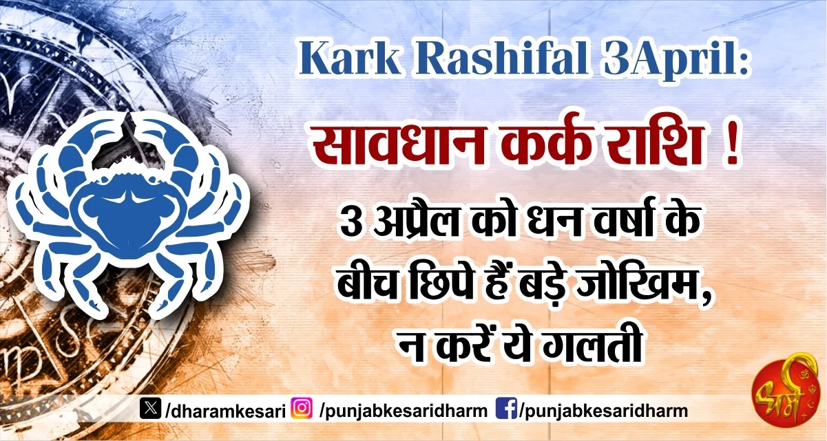 Kark Rashifal 3 April : सावधान कर्क राशि ! 3 अप्रैल को धन वर्षा के बीच छिपे हैं बड़े जोखिम, न करें ये गलती