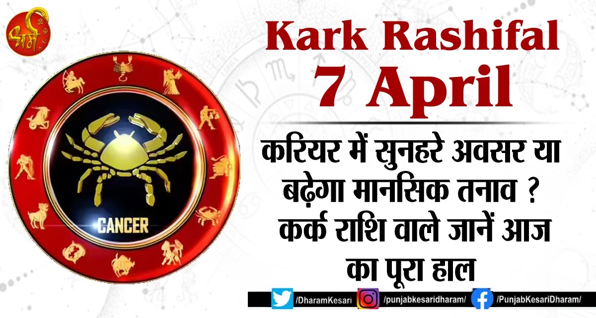 Kark Rashifal 7 April : करियर में सुनहरे अवसर या बढ़ेगा मानसिक तनाव ? कर्क राशि वाले जानें आज का पूरा हाल