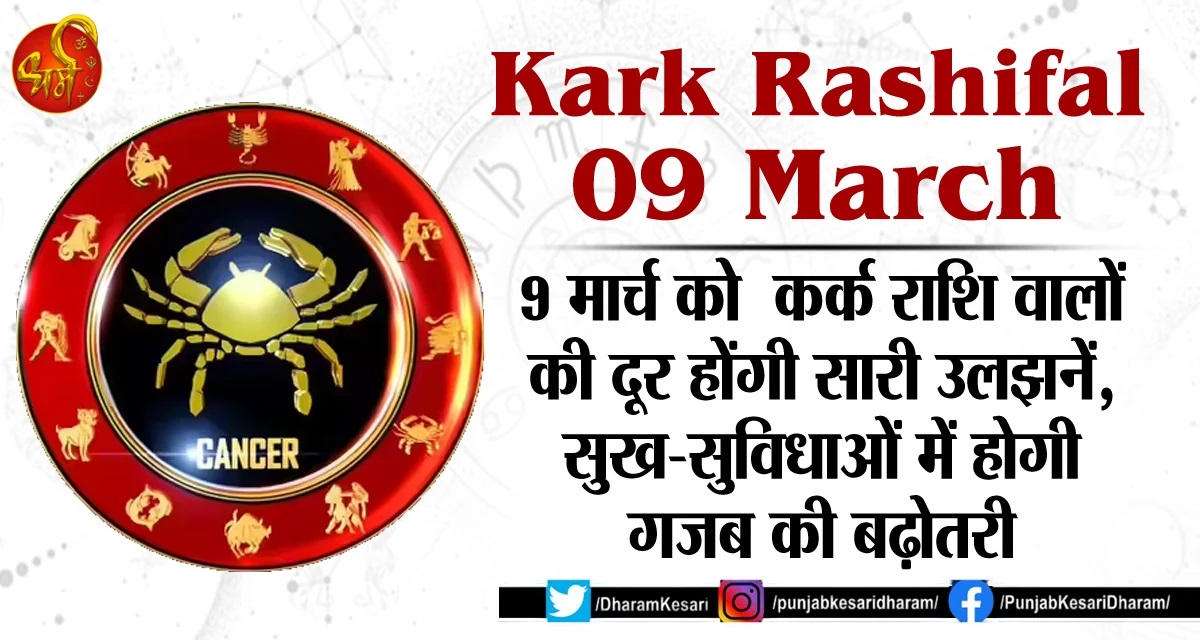 Kark Rashifal 9 March : 9 मार्च को कर्क राशि वालों की दूर होंगी सारी उलझनें, सुख-सुविधाओं में होगी गजब की बढ़ोतरी