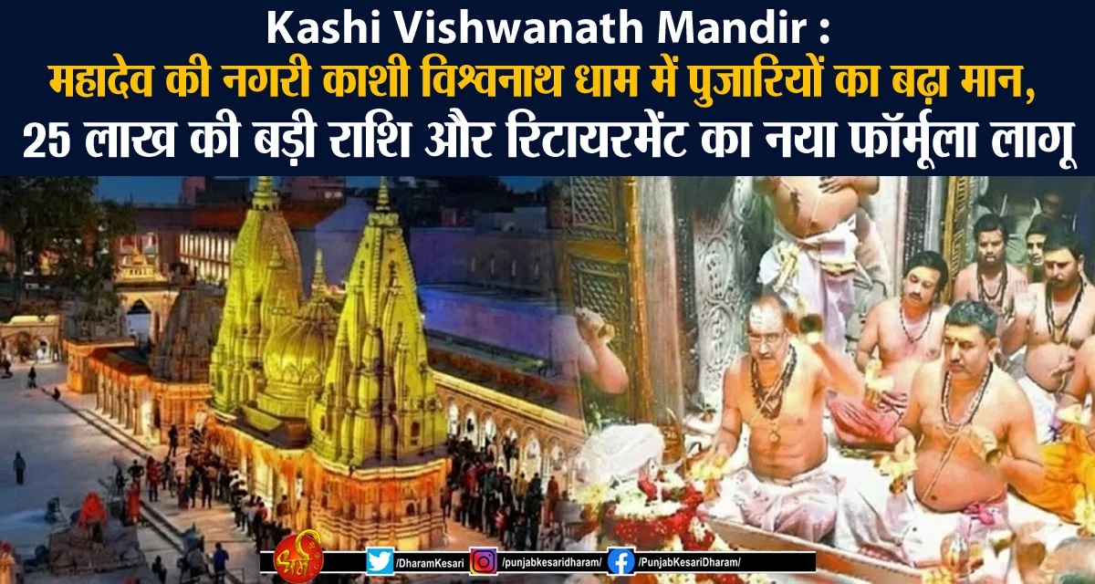 Kashi Vishwanath Mandir : महादेव की नगरी काशी विश्वनाथ धाम में पुजारियों का बढ़ा मान, 25 लाख की बड़ी राशि और रिटायरमेंट का नया फॉर्मूला लागू