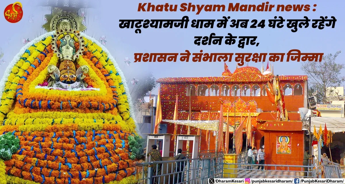 Khatu Shyam Mandir news : खाटूश्यामजी धाम में अब 24 घंटे खुले रहेंगे दर्शन के द्वार, प्रशासन ने संभाला सुरक्षा का जिम्मा