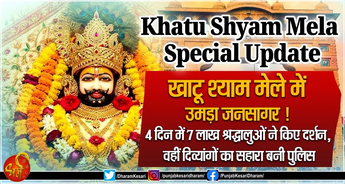 Khatu Shyam Mela Special Update : खाटू श्याम मेले में उमड़ा जनसागर ! 4 दिन में 7 लाख श्रद्धालुओं ने किए दर्शन, वहीं दिव्यांगों का सहारा बनी पुलिस