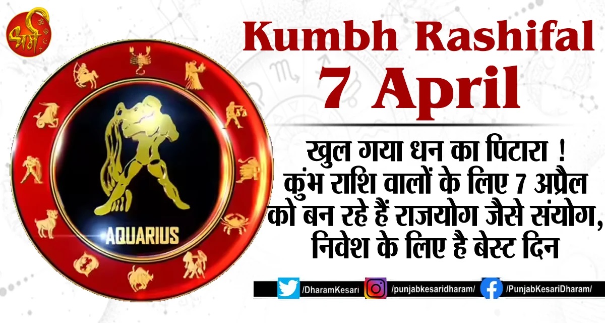 Kumbh Rashifal 7 April : खुल गया धन का पिटारा ! कुंभ राशि वालों के लिए 7 अप्रैल को बन रहे हैं राजयोग जैसे संयोग, निवेश के लिए है बेस्ट दिन