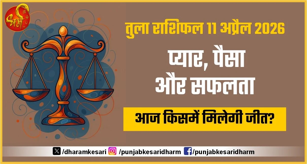 कुल मिलाकर, 11 अप्रैल 2026 का दिन तुला राशि के लिए प्यार, पैसा और सफलता। तीनों क्षेत्रों में सकारात्मक संकेत देता है। यदि आप संतुलन और समझदारी बनाए रखते हैं, तो आज आप हर क्षेत्र में जीत हासिल कर सकते हैं और जीवन में आगे बढ़ सकते हैं।